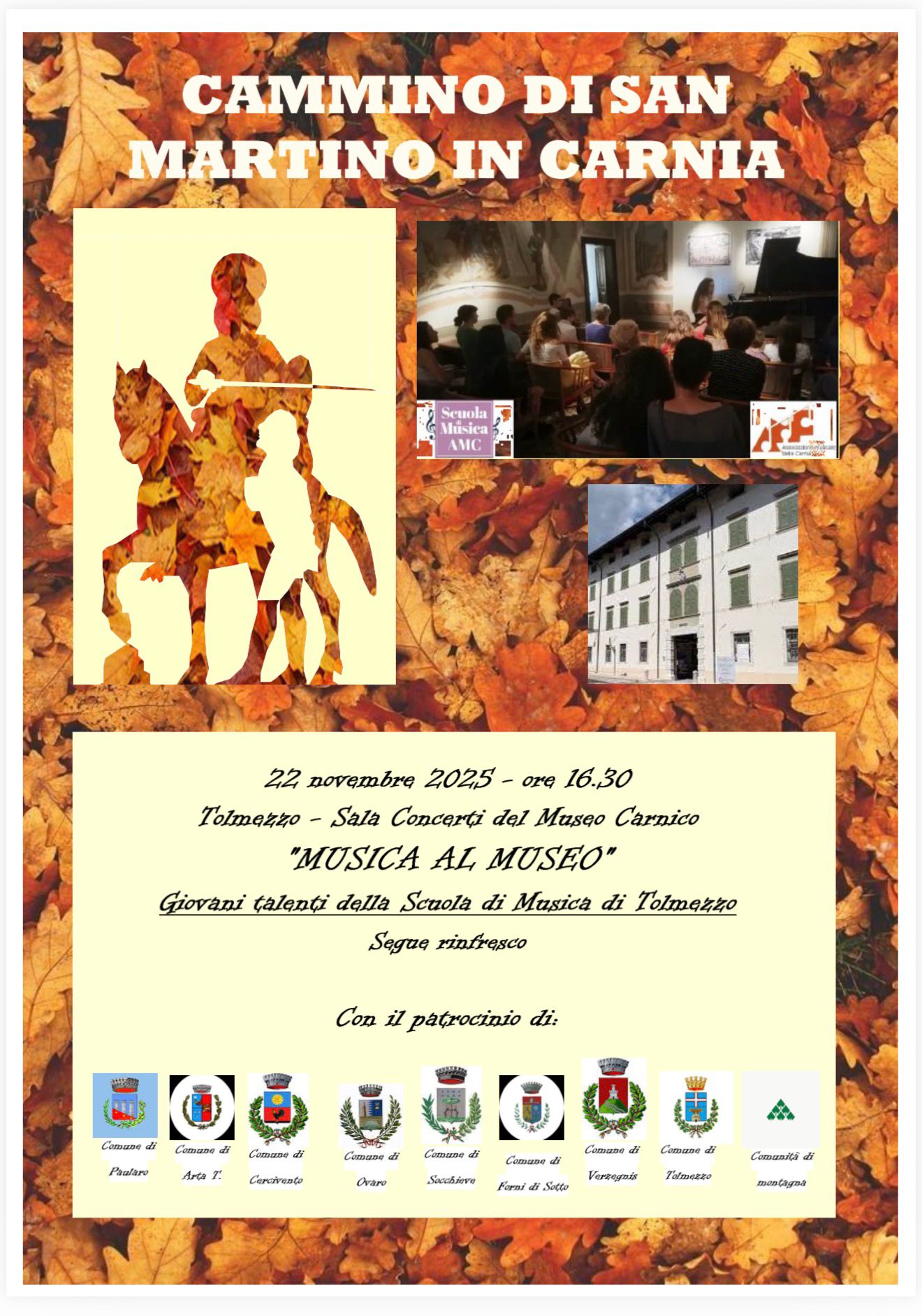 Sabato 22 novembre, alle 16.30, il Museo ospita il concerto "Musica al Museo" con i giovani talenti della Scuola di Musica di Tolmezzo.